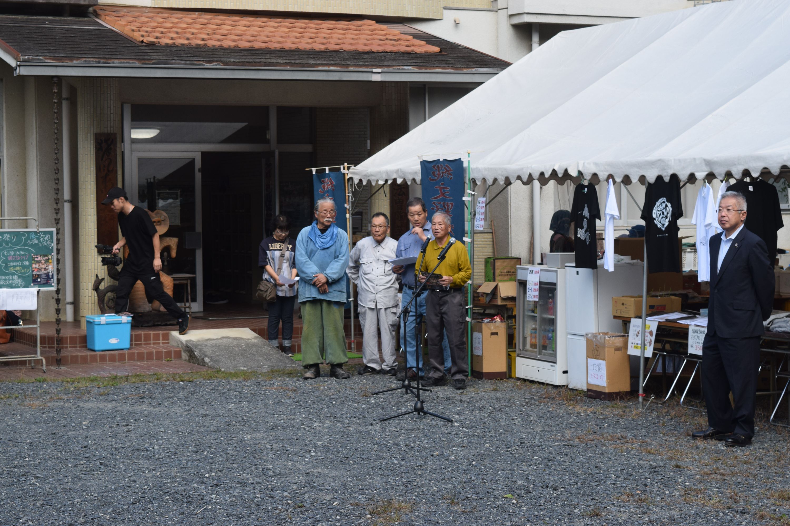 開会式では法曽焼同好会小林会長や新見市教育長、猪風来美術館後援会奥津会長のご挨拶がありました。石田新見市長も駆けつけてくれ激励の言葉をいただきました。