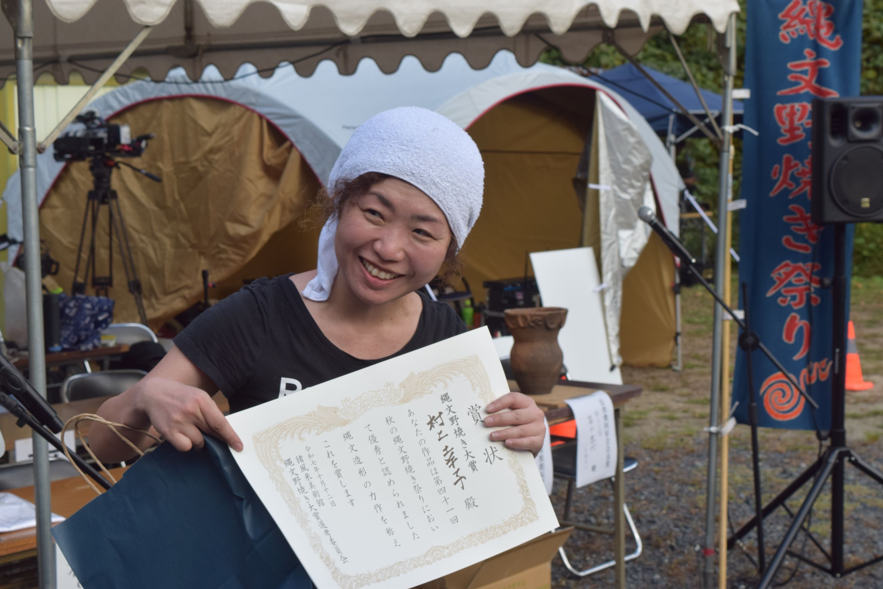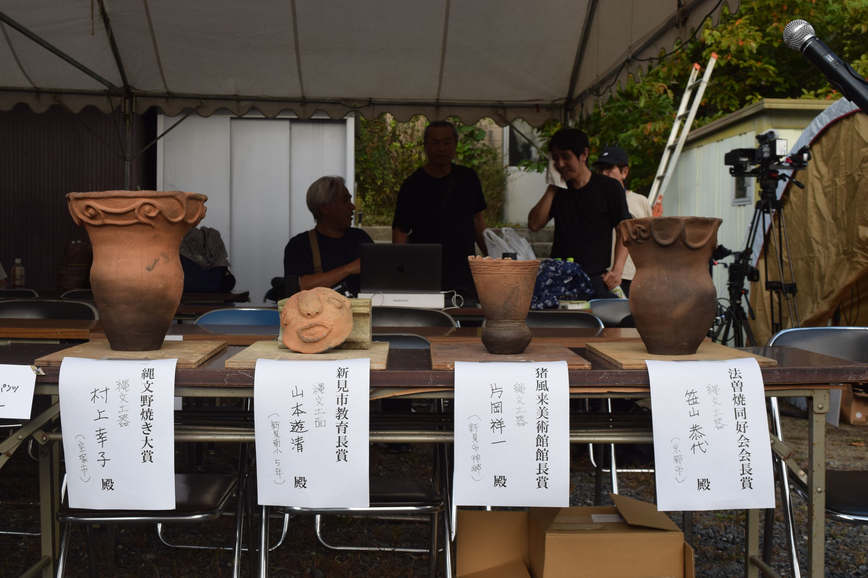 焼き上がった作品の中から、縄文野焼き大賞など4賞が選ばれ、表彰されました。